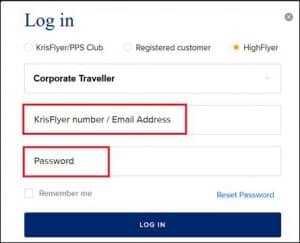 You can add your KrisFlyer credentials or email address along with your password to complete the login process.